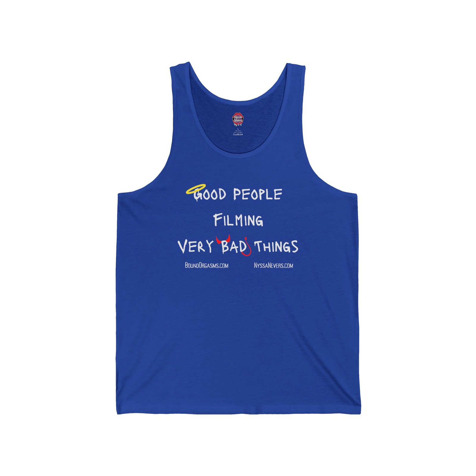 The Nyssa Nevers – Good People Filming Very Bad Things – Unisex Jersey Tank (10 colors) is the perfect fit for content creators and fans who support the rebels of the adult industry.